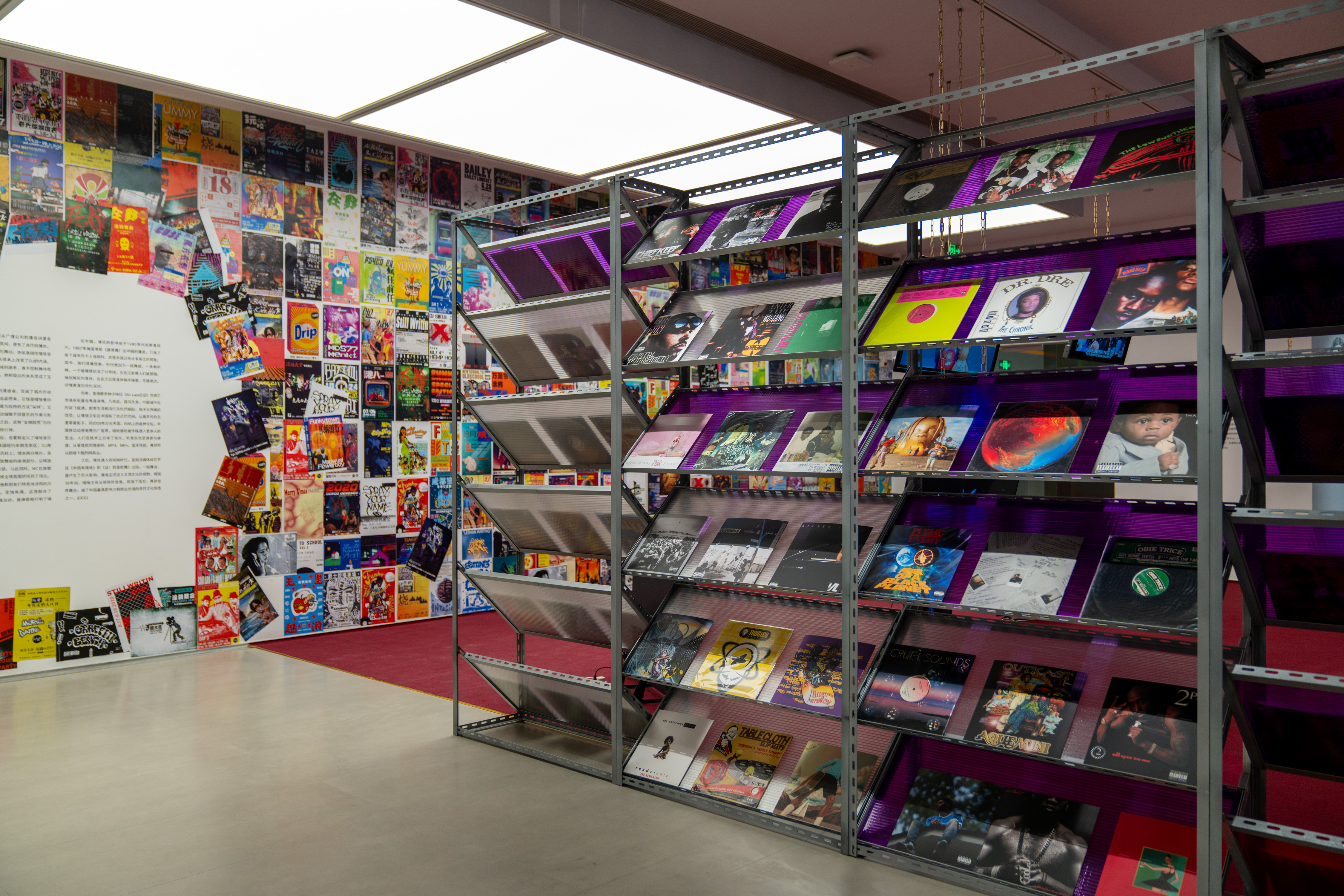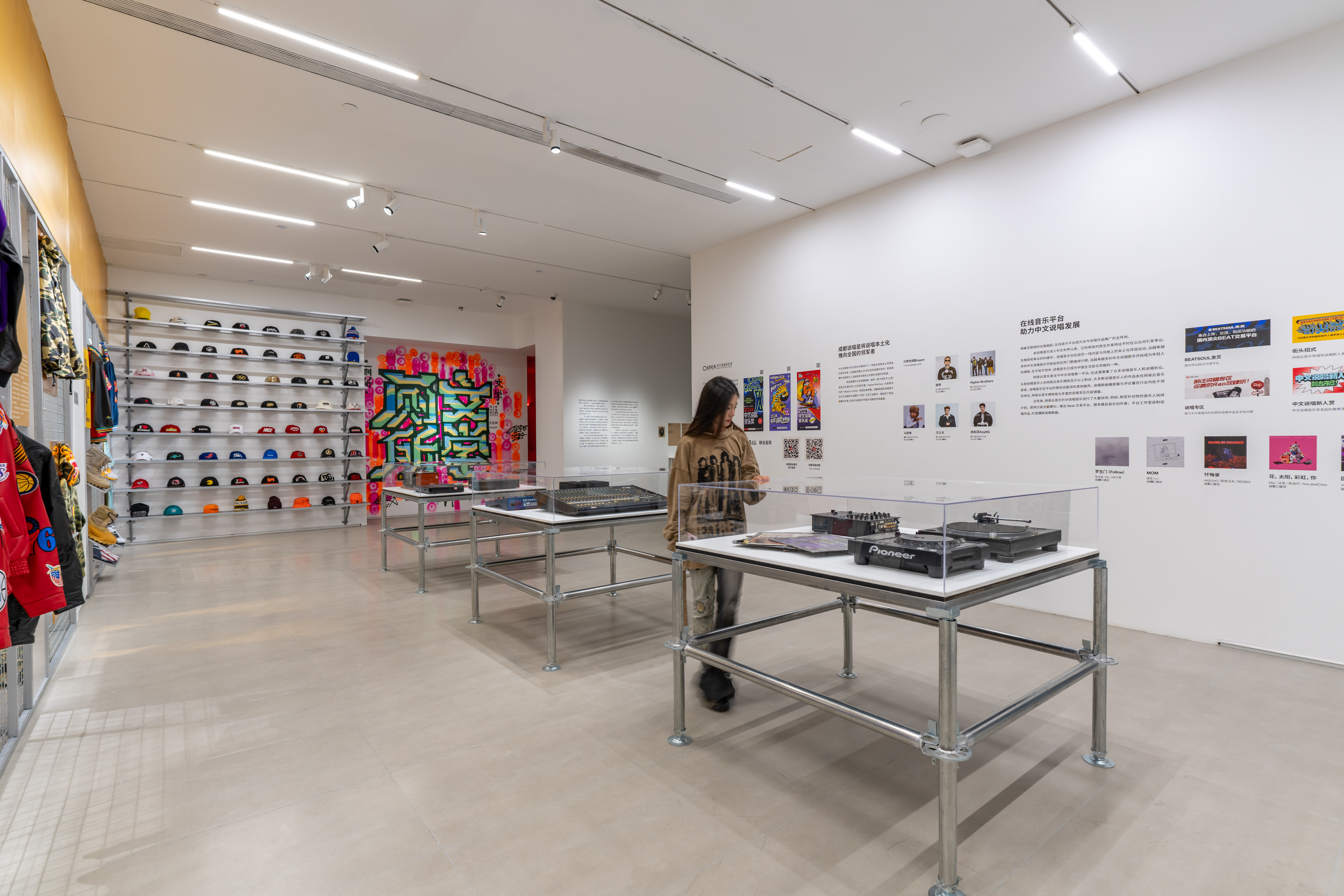 通过三个不同主题板块,对嘻哈文化的本土演变、街头实践与时代语境进行系统性的呈现与整理。这次展览超50位参展艺术家的阵容,包括说唱圈人物马思唯、谢帝、王以太等;中国街舞圈中的“Locking之王”肖杰、《这!就是街舞》冠军杨凯等;涂鸦圈的氣 GAS AKA NIT,SEVE,DENS阿登,以及唱片骑士DJ R Sun、DJ BANGBANG LEE等。